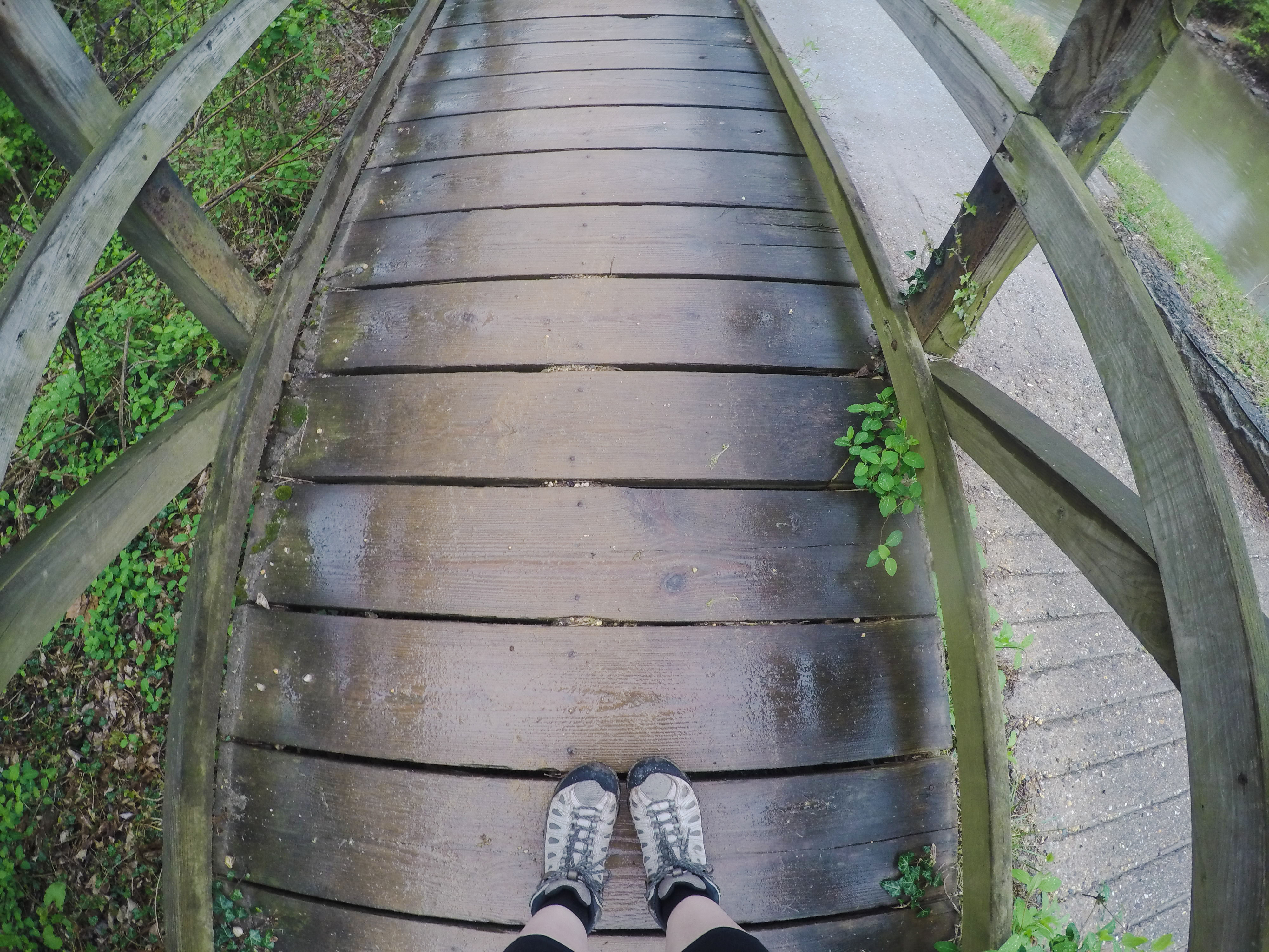 As I walked back to the towpath, I noticed for the first time that my feet didn’t feel quite right. There was a bench nearby. I plopped down and took off my shoes.